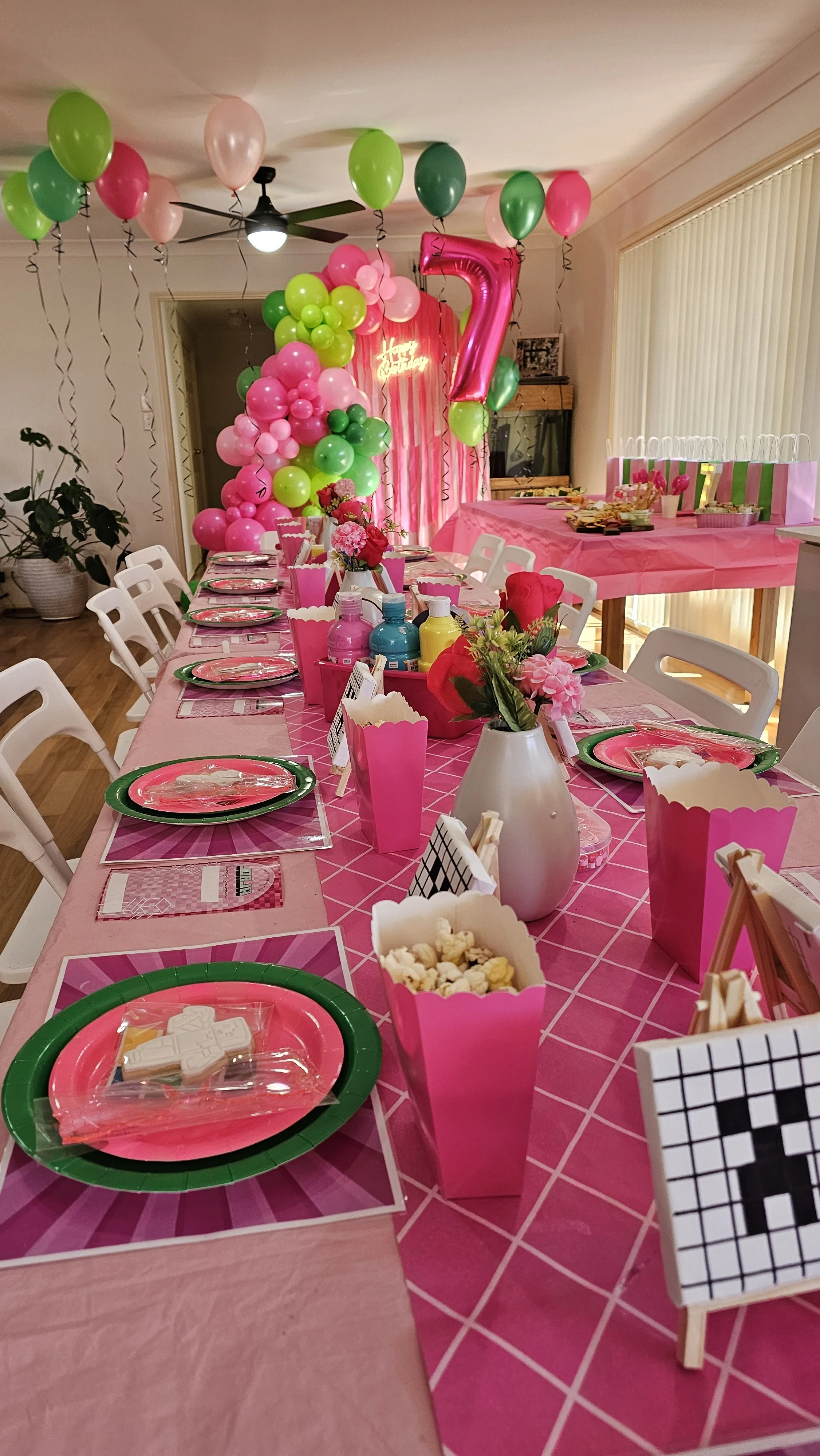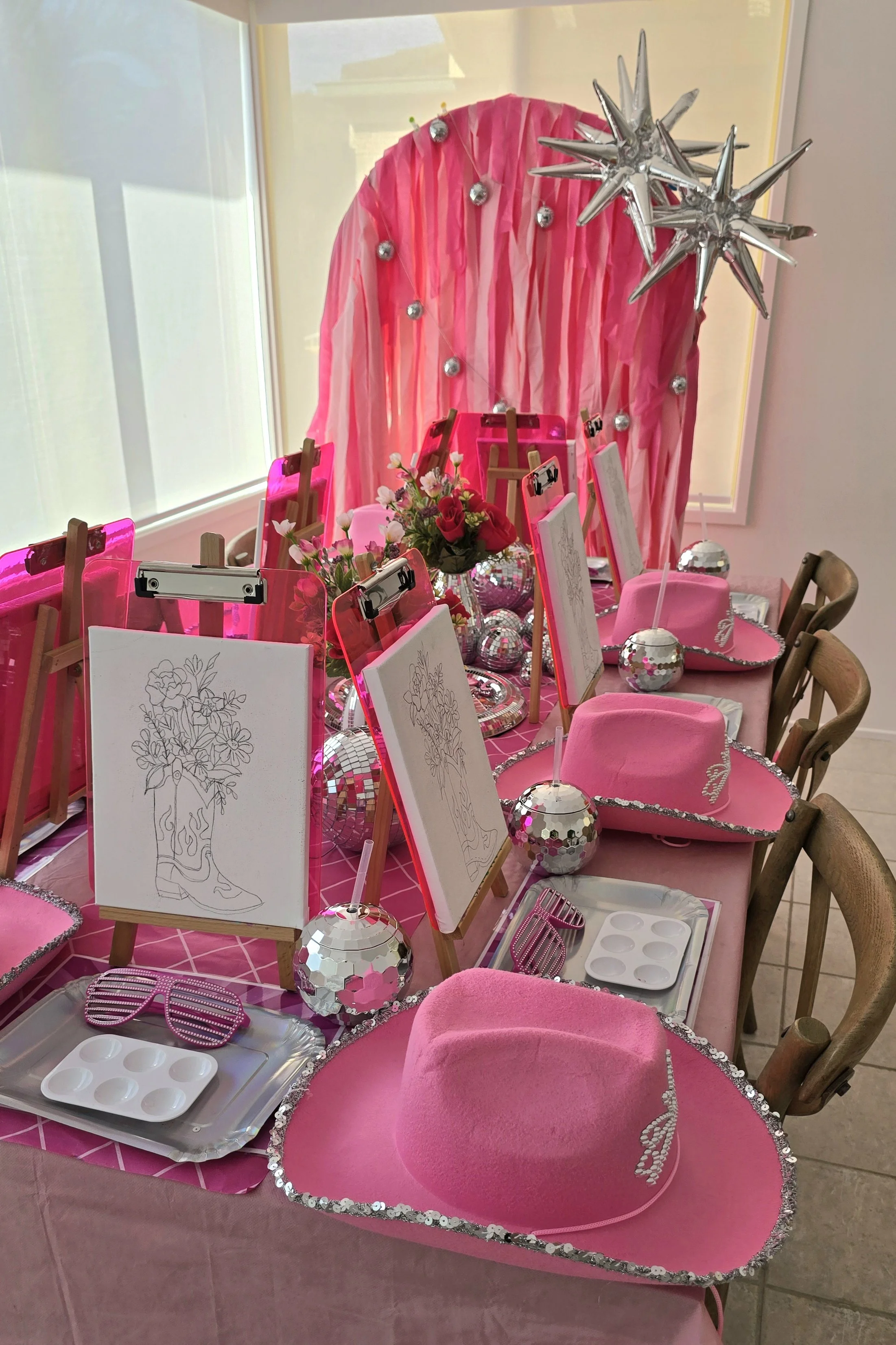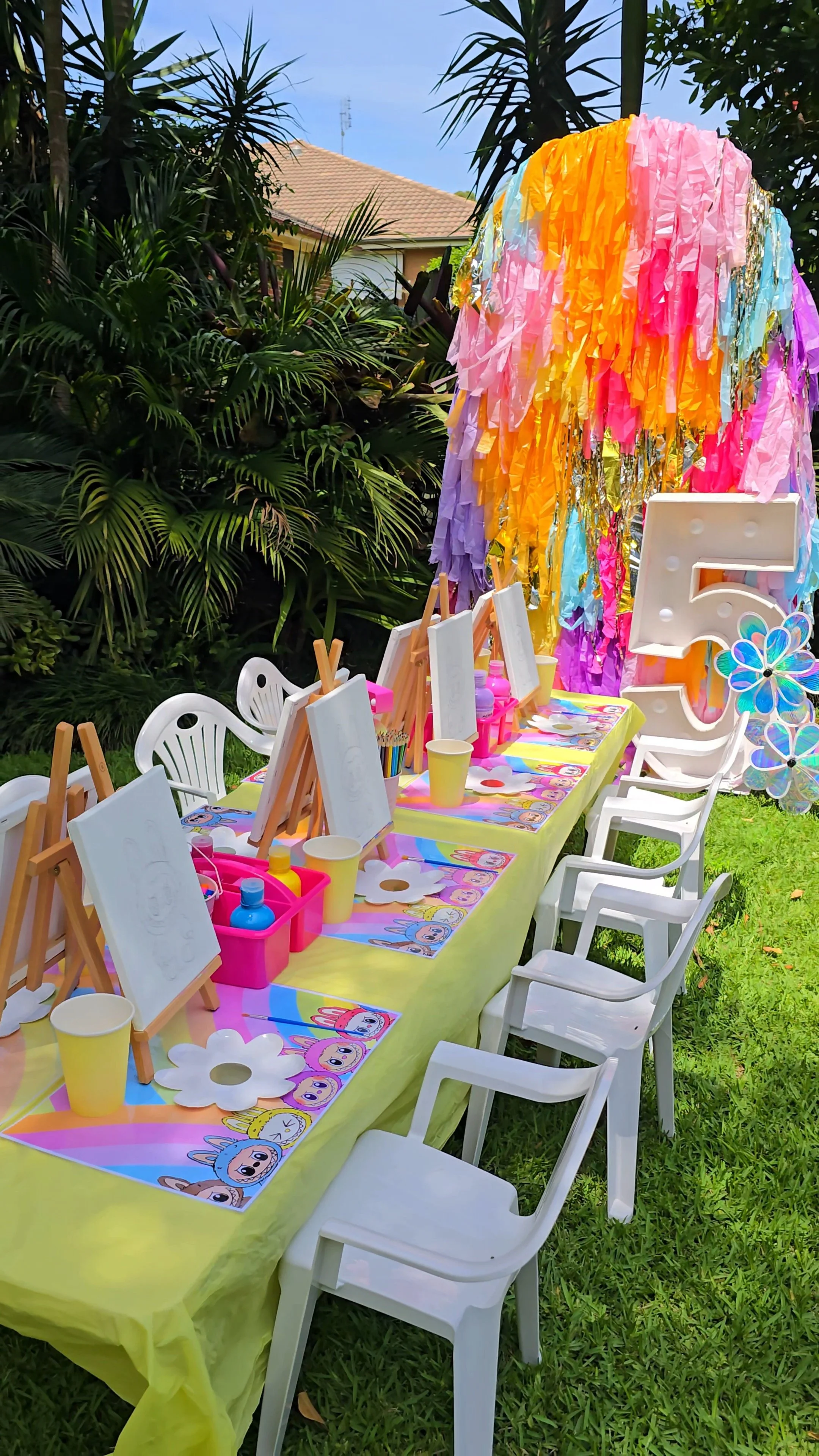 Beautifully styled table setup with colourful decorations to set the perfect creative scene (different theme and colours available by request.)