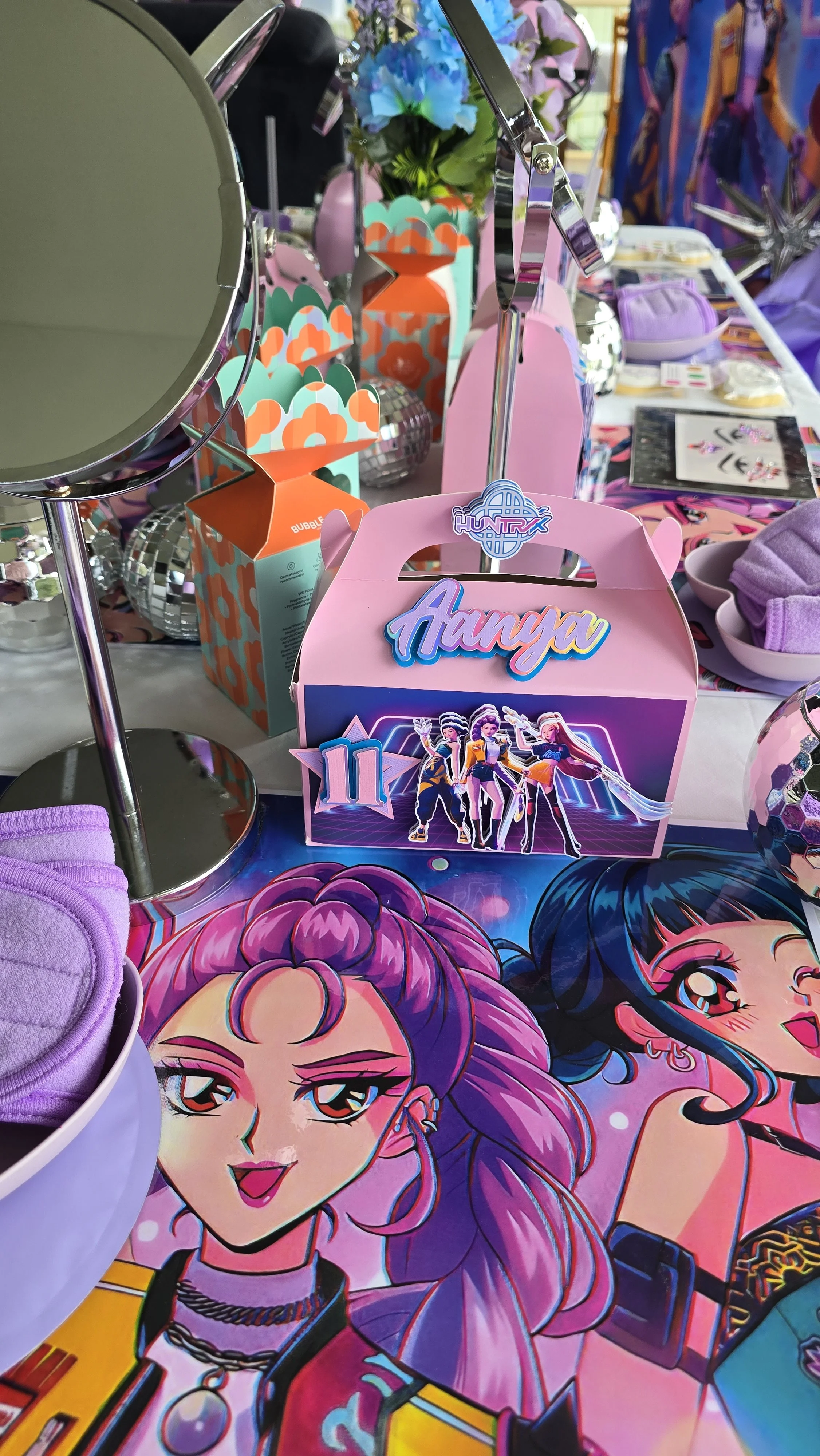 Step into the spotlight with our K-Pop Demon Hunters Party — the ultimate glam-meets-fierce celebration! Perfect for kids who love music, style, sparkle and a little dramatic flair, this party transforms your guests into superstar demon hunters ready to shine on stage.